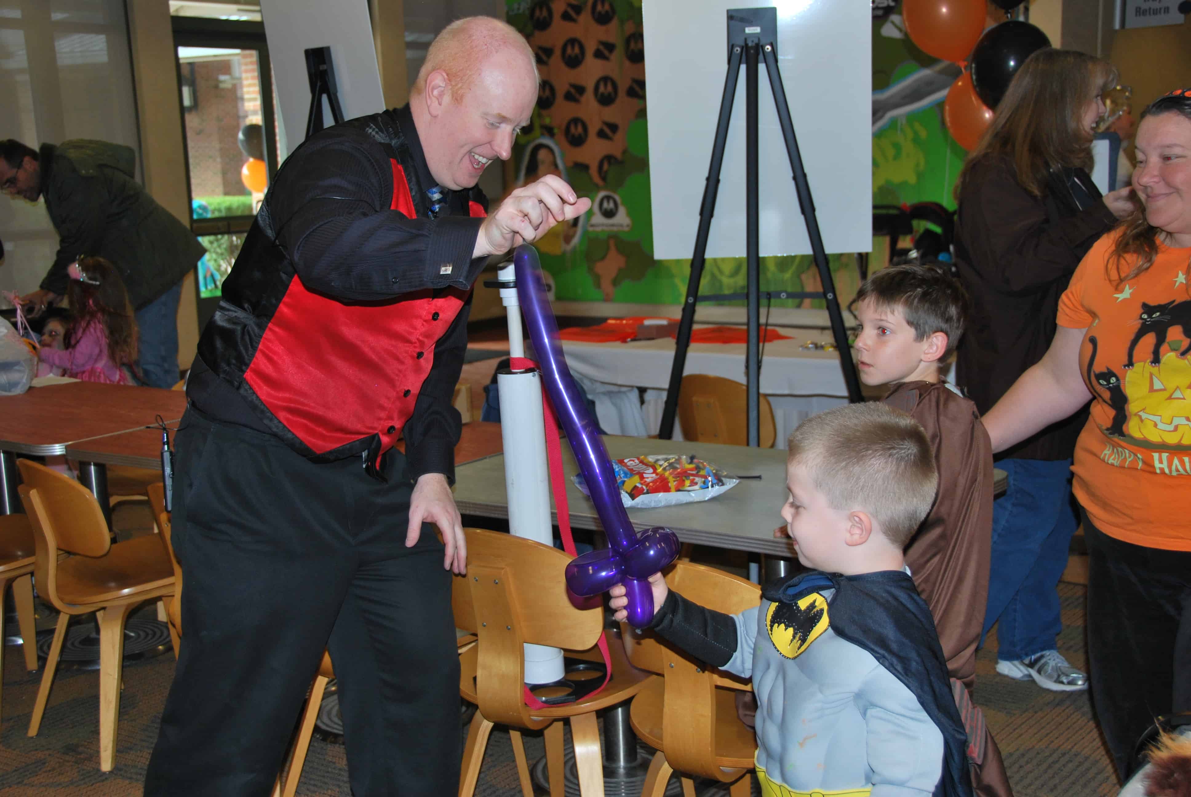 Just a fun quick post. Was looking through some email from last year, as I was booking a repeat show, and noticed that the client (Sprint) had sent me a picture that someone int heir audience had sent in. This was a show where I was also doing balloon animals, and here I’m handing a balloon to a kid dressed up as batman to complete the costume. Not that batman always needs a sword, but this one did!